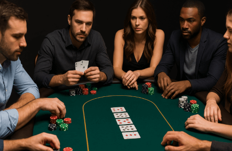 德州扑克中共有四轮下注:翻牌前(Pre-flop)、翻牌后(Flop)、转牌(Turn)、河牌(River)。玩家可选择 弃牌(Fold)、跟注(Call) 或 加注(Raise)。
